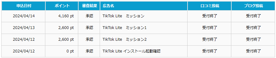 2024年4月12日に会員登録してポイント獲得(別記事のTikTok Lite登録)